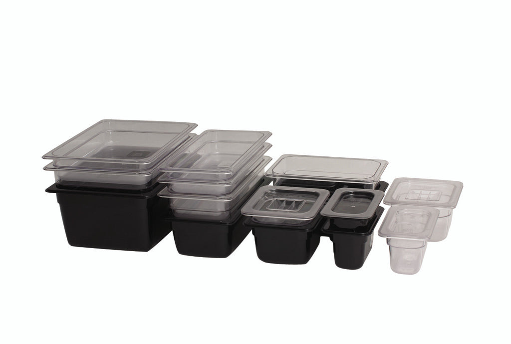 GenWare offers a comprehensive range of Gastronorm pans, in stainless steel, polycarbonate and polypropylene. The stainless steel range conforms to EN631 European standard, with a hard wearing electropolish finish. The range also comes in a complete and extensive choice of size and depth, with the relevant size and depth etched on each piece for easy identification. Also within this range are sealing lids for transportation. Polycarbonate ranges are ideal for salad bar presentation, and come in extensive depths and sizes. Polypropylene gastronorm containers offer excellent performance and value, and are particularly suitable for food storage use.