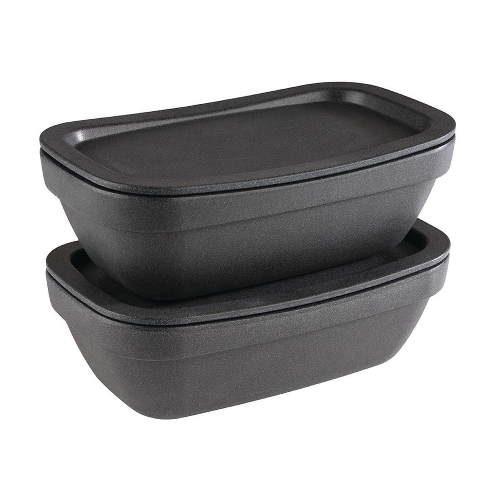 Cast-iron-effect buffet and tabletop pieces made from lightweight yet extra durable melamine.