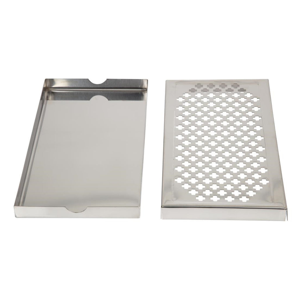 Keep your bar tidy and your surfaces dry with this stainless steel drip tray from Beaumont. The 300 x 150mm (12 x 6") tray can be used when serving drinks to catch any overflowing spills or drips before your customers or waiting staff take them to the table. A drier bar surface means less time wasted cleaning up, along with fewer wet elbows and soggy sleeves!