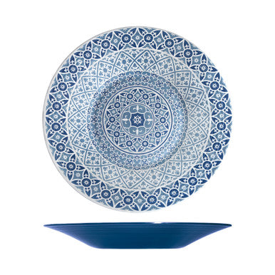 Our brand-new Blue Marrakesh Bowl with a totally unique Moroccan themed geometric design are made up of 100% shatterproof melamine which allows you to add vibrancy and visual appetite appeal to virtually any type of food display.The Marrakesh Moroccan Blue effect melamine bowls measure 480x60mm and 6.5L which are 100% food safe and easier to manage than porcelain or ceramic alternatives as our products are durable, built for longevity & dishwasher safe.Ideal for both ambient and chilled food display our Marrakesh Moroccan Blue effect bowls are perfect for presenting fresh foods, fruits "front of house", salads, appetizers & freshly prepared pasta.The durable and food safe Marrakesh collection is an on-trend food display solution and comes in a wide range of different sizes