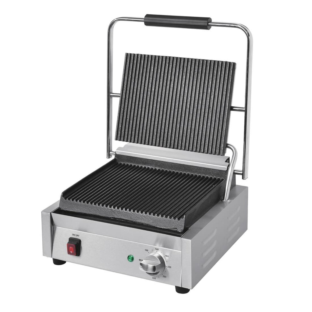 Designed for everyday professional use, the grill combines powerful cooking elements and ribbed plates, allowing you to cook delicious dishes with the grill-lines that customers crave. And thanks to the ribbed design, fat and grease is channelled away from the food to leave it healthier and more appetising. Once service is over, the grill is simple to clean down. Supplied with a handy grill scraper.