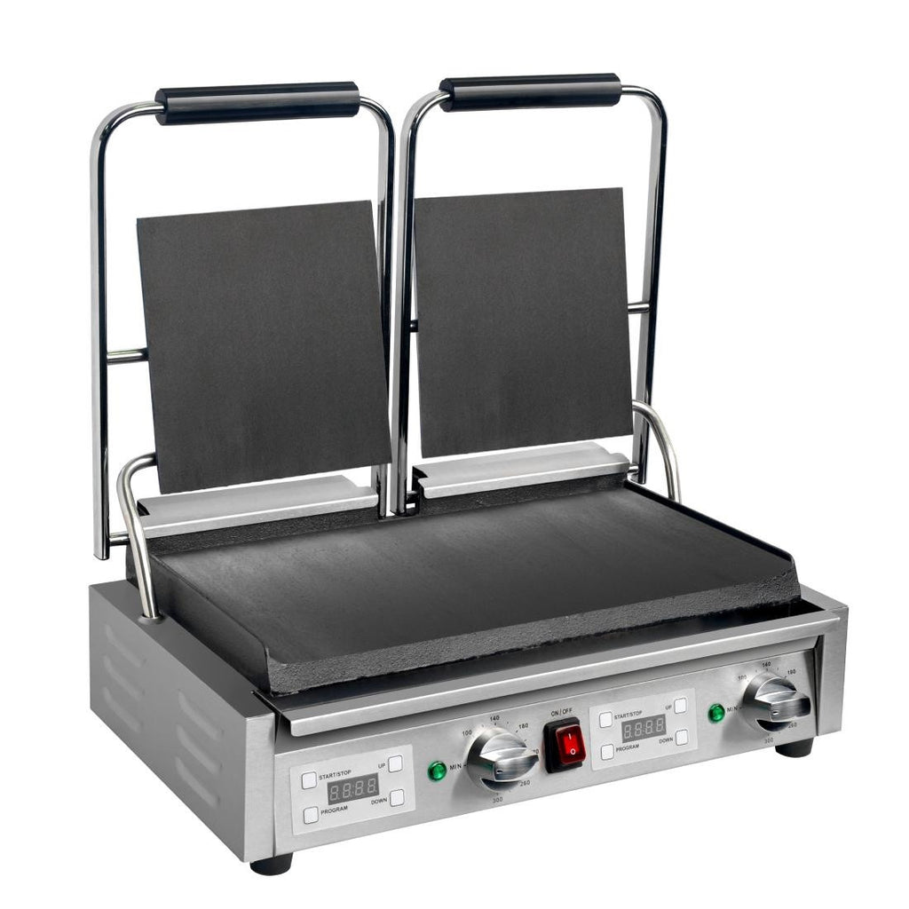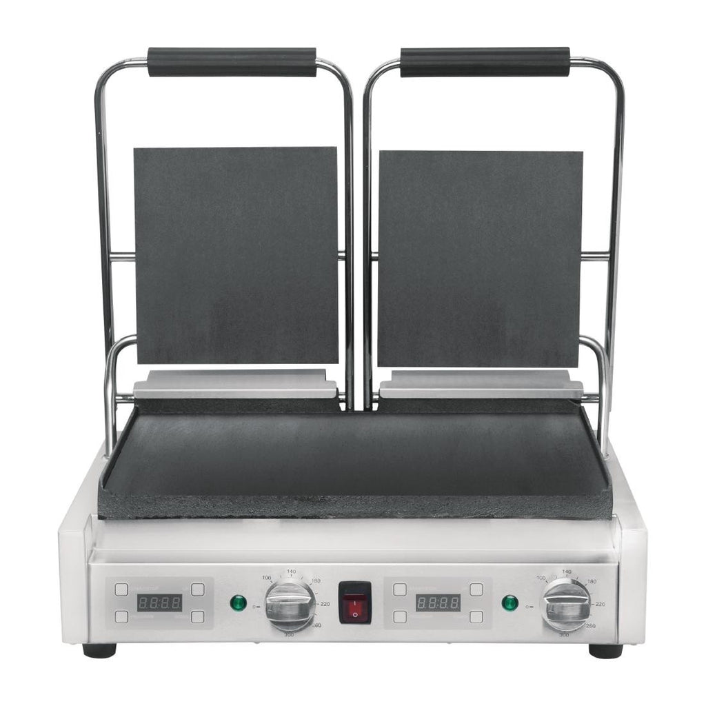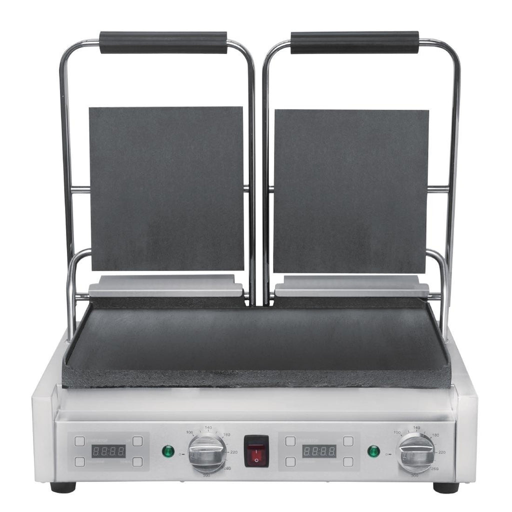 With its rapid heat-up and generously-sized cast iron grilling surface, the Buffalo double contact grill is a powerful and reliable addition to professional kitchens. Perfectly designed to produce great tasting food, the grill features independent accurate temperature controls and digital timers for each side, so you'll always get consistent results, whether you're making traditional breakfasts or tempting takeaway snacks.