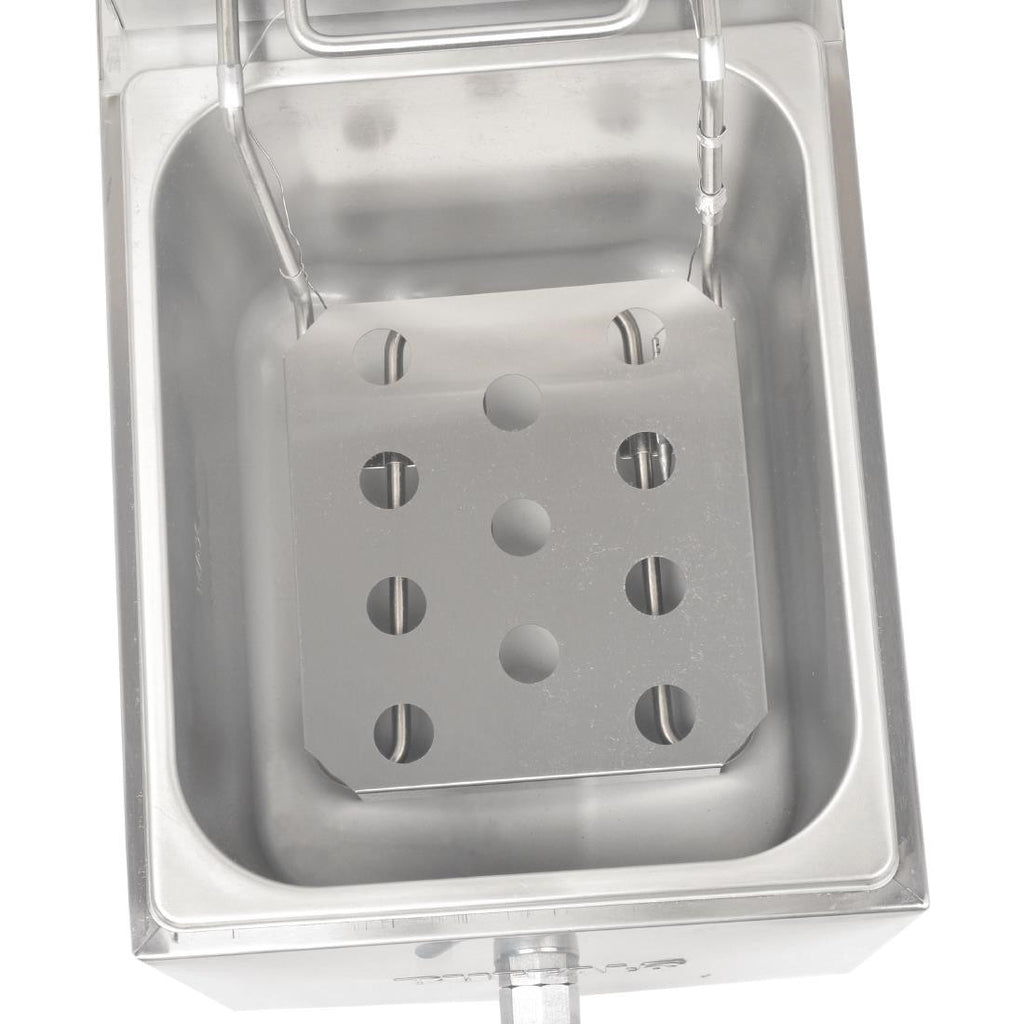 Once you're done for the day, the whole fryer is easy to clean and maintain. The front-mounted drain tap makes the process even easier - there's no need for lifting heavy pans of oil - simply put a container underneath and open the tap. The V-shaped pan maximises the oil drained away, leaving it ready for cleaning and refilling. And when the fryer is not in use, the included stainless steel lid helps to protect the oil until the next cook.