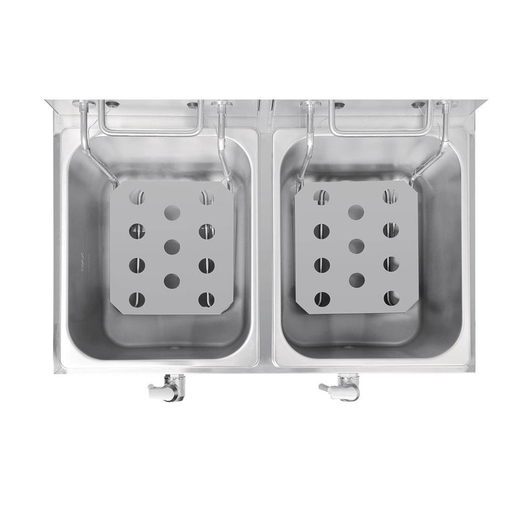 Once you're done for the day, the whole fryer is easy to clean and maintain. The front-mounted drain taps makes the process even easier - there's no need for lifting heavy pans of oil - simply put a container underneath and open a tap. The V-shaped pans optimises the oil draining process, leaving the tank ready for cleaning and refilling. And when the fryer is not in use, the included stainless steel lids help to protect the oil until the next cook.