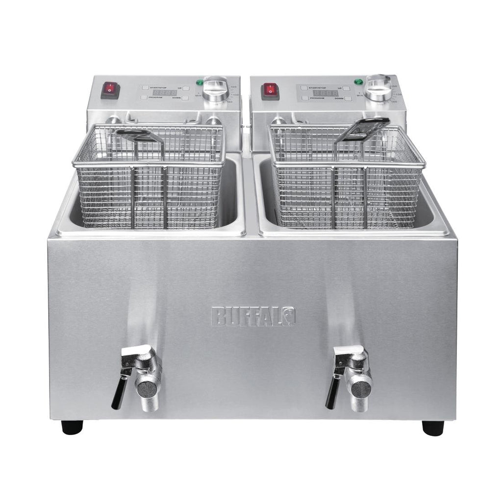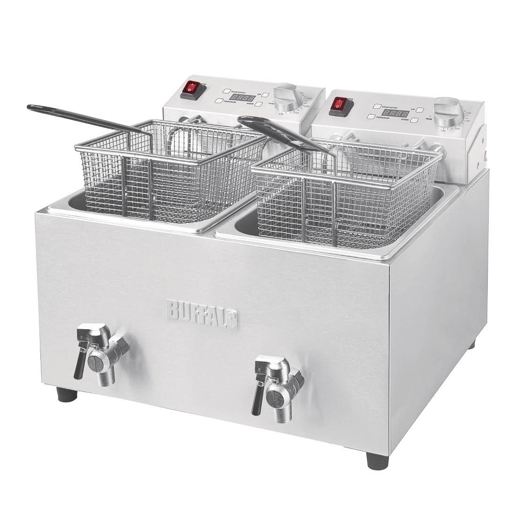 Cook up all your fried favourites with the 8Ltr Buffalo twin tank countertop fryer. Designed for everyday performance and reliability, the fryer makes it easy to get the results you're looking for - whether that's traditional chips, seafood or desserts.