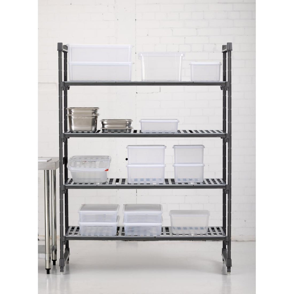 Vented shelves make the Cambro Basic range perfect for storing a huge variety of items, from frozen or dry foods to clothing and paperwork. The 4 shelf unit is made from a fibreglass and resin composite which makes it extremely durable and resistant to high and low temperatures - from as low as -38°C up to 88°C. And as it's not metal, it's resistant to particularly humid conditions, commonly seen in commercial cold rooms.