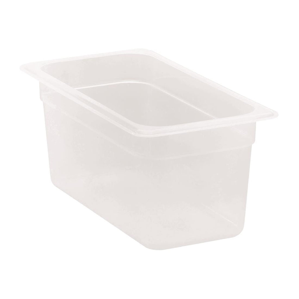 Ensure efficiency while increasing food safety in your establishment with this Cambro translucent gastronorm food pan! Built to withstand temperatures from -40°C to 70°C, and made of translucent polypropylene, this food pan is designed to last even in the toughest commercial kitchens. Use it to store, transport, and serve all from the same pan - the translucent material allows for content visibility.
