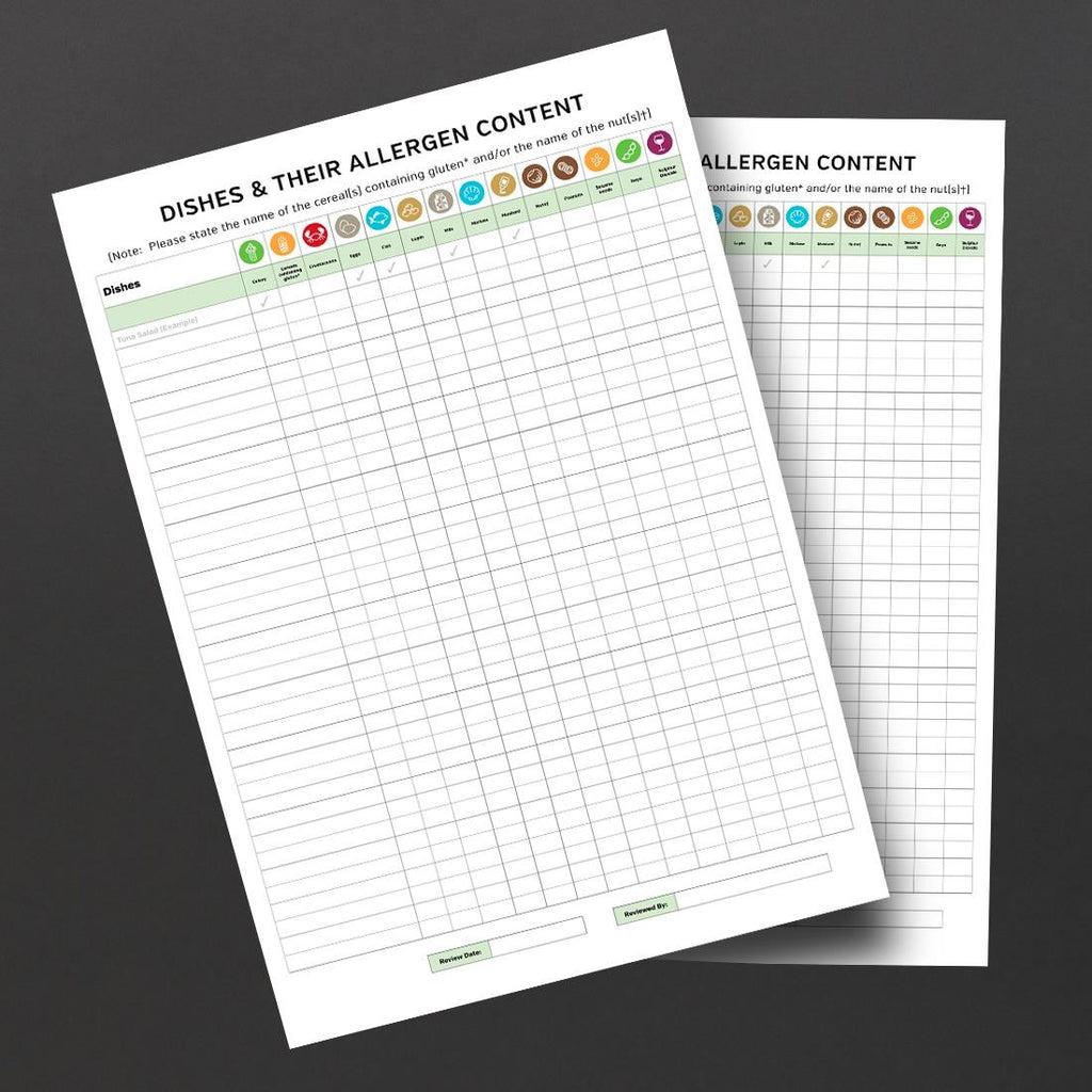 Ensure your staff are fully aware of the allergen risks in each of your dishes by displaying this easy to follow allergen guide. The guide allows you to fill in your own range of dishes and the allergens present in each one. This helps to reduce any risks of being unsure of the ingredients for both staff and customers.