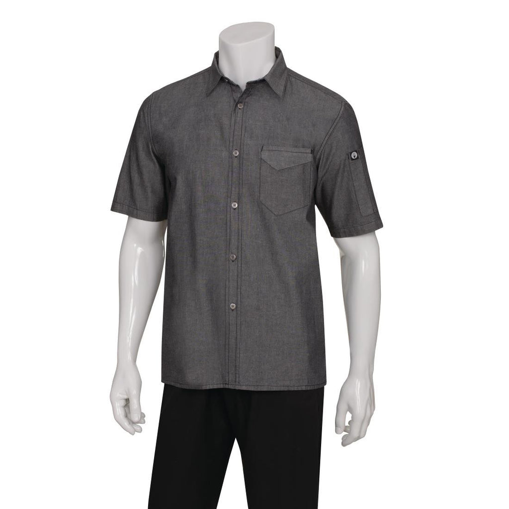The Chef Works black denim shirt is a practical addition to any staff uniform. Constructed from a lightweight enzyme-washed cotton material, this short-sleeved shirt is comfortable yet durable. Suitable for the front and back of house, the hybrid design boasts all the features you need to serve customers.