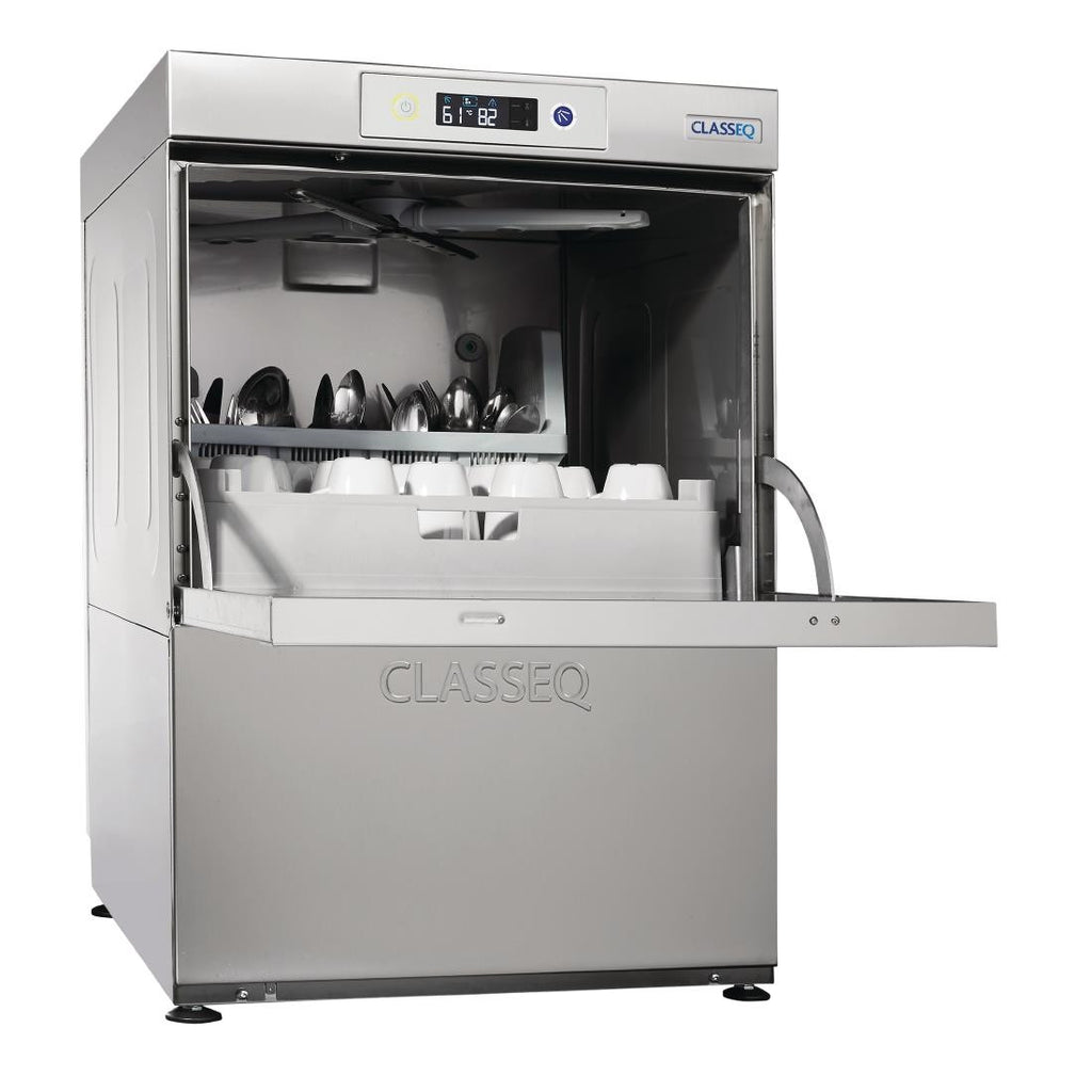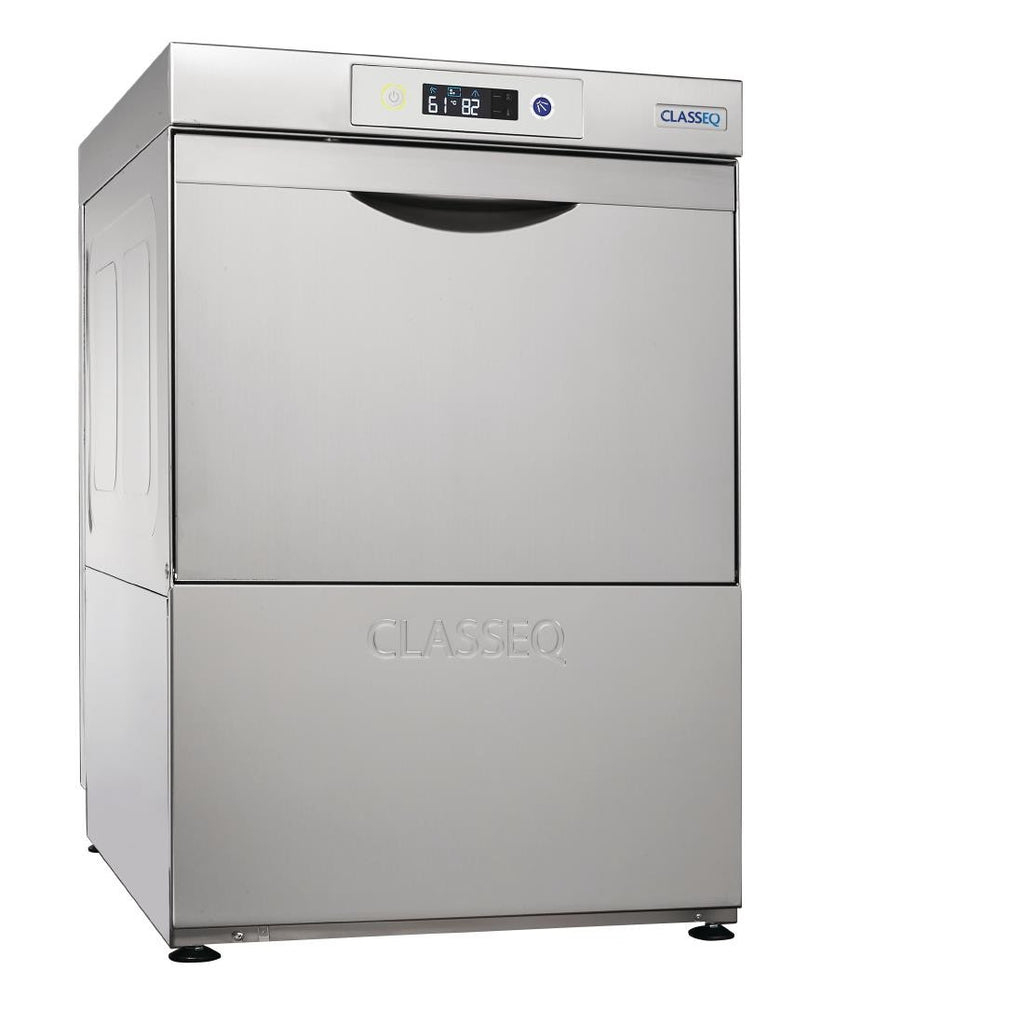 Save time and energy with the Classeq D500 commercial dishwasher. The impressive capacity means you can clean up to 18 full-size dinner plates per three-minute load, allowing for a rapid turnaround of fresh equipment to keep your service running smoothly. Designed to be easy and effective to operate, the washer features simple two-button controls to ensure sparklingly clean results. The self-cleaning and drain down program maximise hygiene, whilst the robust double-skinned door construction reduces running costs as well as operational noise.