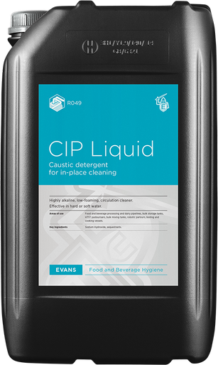 Evans Vanodein CIP Liquid, caustic detergent for in place cleaning, is a concentrated, highly-alkaline, non-foaming circulation cleaner for all types of food processing, dairy pipelines, bulk storage tanks, HTST pasteurisers, bulk mixing tanks, robotic parlours, boiling and cooking vessels.