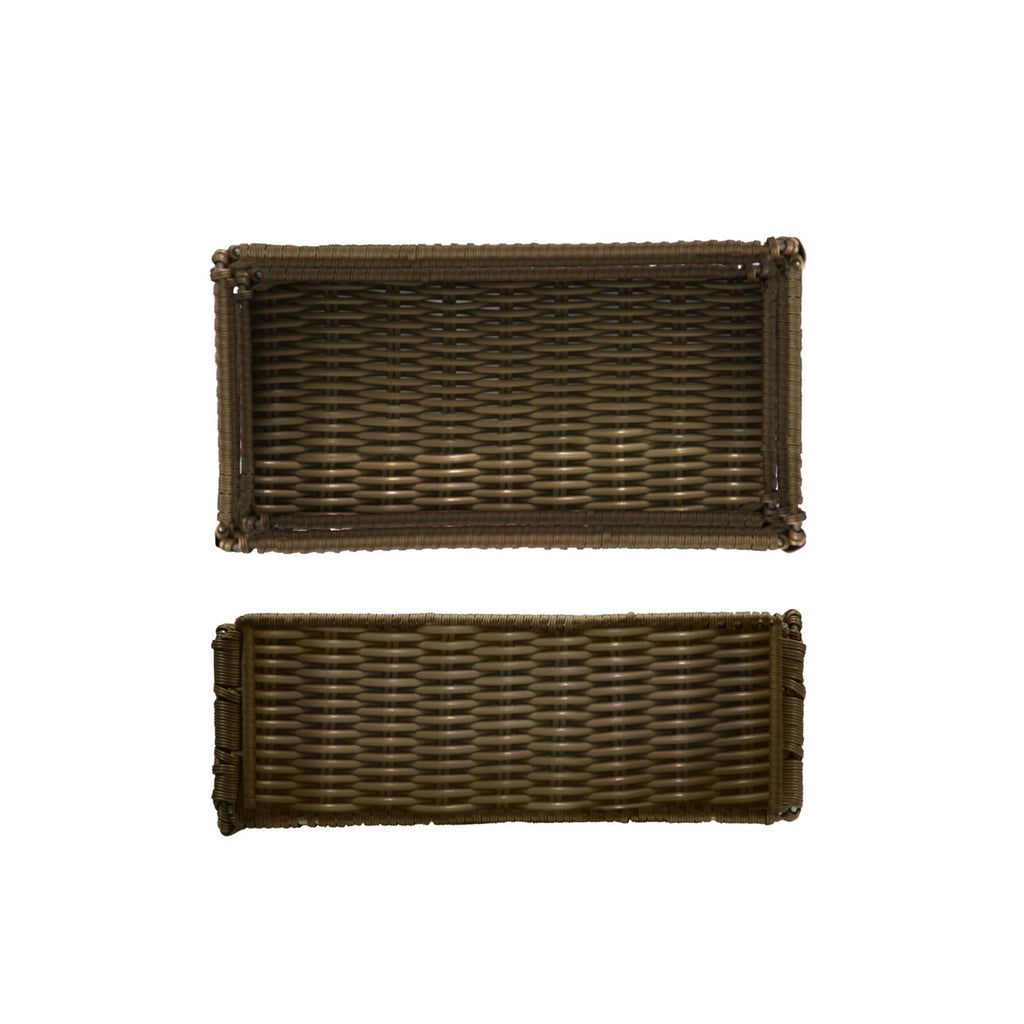 Our Lisbon 1:3 Gastro fold-flat poly wicker basket, which measures 325x176x100mm is a fantastic alternative to real wicker, whilst offering a natural look and feel for your food display. When storage space is a premium at the end of service, our fold flat poly wicker baskets are ideal for supermarkets, coffee shops and contract caterers to display a range of food, from popcorn to bread, from fruit to cheese. This premium basket is 100% food safe, extremely durable and doesn't flake like real wicker.