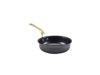 The Black Vintage Steel collection creates an industrial look enhancing food presentation, perfectly suited for a wide range of popular cuisines. The collection is made from stainless steel and features an industrial vintage finish with a durable black PVD coating permitting direct contact with food. The Mini Fry Pans feature attractive brass handle, well suited to upscale casual dining and combines beautifully with white or reactive glazed ceramic for presenting premium sides, starters or desserts.