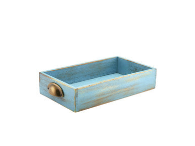 - Rustic blue wash finish
