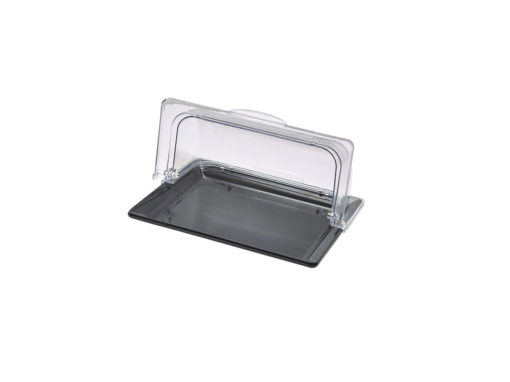 The use of GN polycarbonate covers helps to keep food fresh and protected from contamination. The cover is designed for use with various GN1/2 platters and pans. Made from polycarbonate it is easy to clean and durable, ideal for use in busy food service areas. The roll top lid folds effortlessly helping you to remove food with ease.