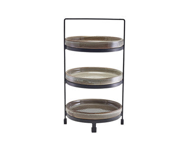 The Three-Tier Plate Stand is a modern take on traditional Afternoon Tea Stands to not only create a fun plating display but to also save table space. Constructed from industrial powder coated steel, the plate stand holds our 20.5cm Terra Porcelain Presentation Plates making this great for buffet display or for presenting a variety of dishes at the table. The stand comes complete with silicon feet for added stability and to protect table surfaces.