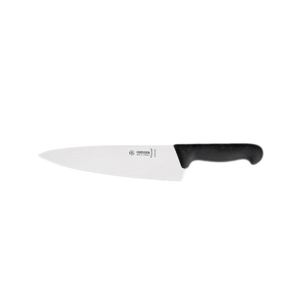 The GenWare professional chef knife collection consists of a wide choice of knives and accessories available through both GenWare and the German Knife manufacturer, Giesser. GenWare black-handled and colour coded range of professional chef knives offer a full tang blade, with razor sharp molybdenum steel blade, which conforms to BS8442-5, giving initial sharpness and cutting edge retention. Larger knives have soft grip handles which give comfortable and positive handling. Knife sets offer a pre-selected range of knives, ideal for chef colleges, students and professional chefs. Knife cases are designed to carry knives and knife sets safely, offering protection from damage and injury. Our Knife Sharpener is a great alternative to a traditional sharpening steel and features a two stage process designed to rejuvenate blunt knives with a razor sharp blade. Giesser knives, designed and manufactured in Germany, provide an industry leading combination of initial sharpness, cutting edge retention and value for money.