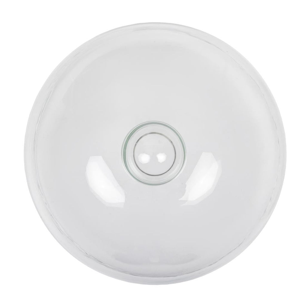 By using a cloche, you can easily merchandise freshly-made tempting treats without having to use potentially expensive packaging or plastics. In addition, this glass cloche can also be used for smoking or infusing food, or simply adding a dramatic touch when you're plating up dishes. At 210mm diameter, this cloche is the perfect size to fit standard size dinner plates.