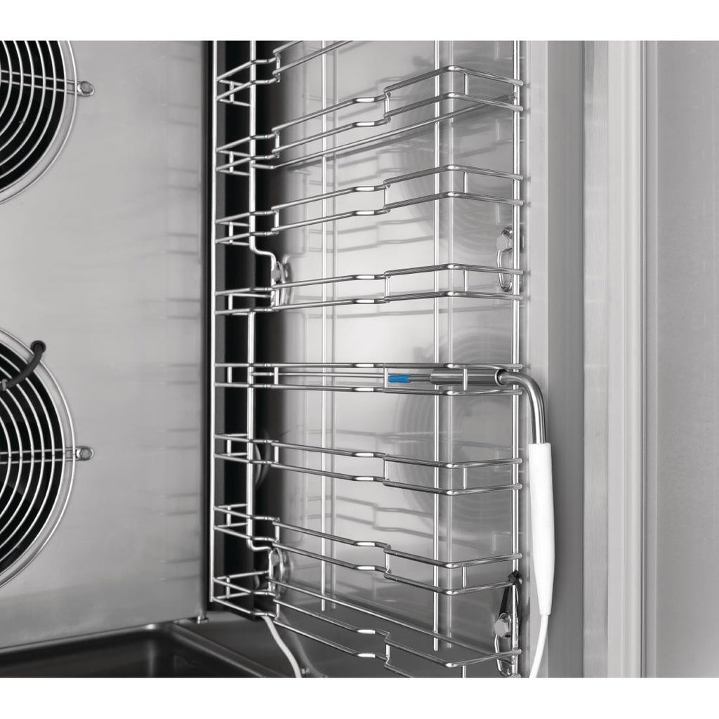 Retain your meal's texture, flavour and consistency whilst ensuring optimal levels of hygiene with this commercial Blast Chiller from Gram. Drawing in cool air from ground level, this unit continues to work efficiently at higher ambient temperatures and in more crowded environments ensuring no food is wasted. With gastronorm compatibility you can prepare large quantities of food for serving at peak hours without worry of running out of food and losing on potential sales. Meanwhile you also cut back on washing up as you can prepare and preserve your food all within the same pan (GN pans sold separately).