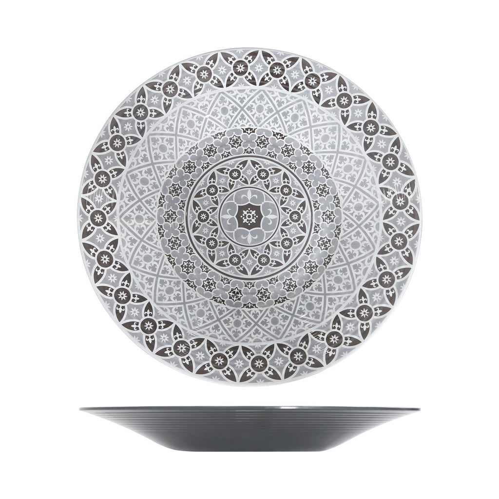 Our brand-new Grey Marrakesh Bowl with a totally unique Moroccan themed geometric design are made up of 100% shatterproof melamine which allows you to add vibrancy and visual appetite appeal to virtually any type of food display.The Marrakesh Moroccan Grey effect melamine bowls measure 480x60mm and 6.5L which are 100% food safe and easier to manage than porcelain or ceramic alternatives as our products are durable, built for longevity & dishwasher safe.Ideal for both ambient and chilled food display our Marrakesh Moroccan Grey effect bowls are perfect for presenting fresh foods, fruits "front of house", salads, appetizers & freshly prepared pasta.The durable and food safe Marrakesh collection is an on-trend food display solution and comes in a wide range of different sizes
