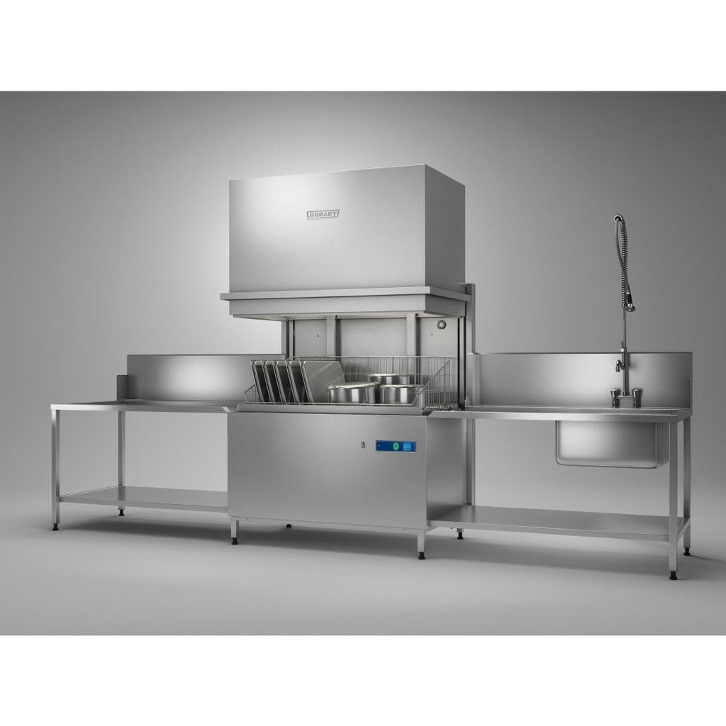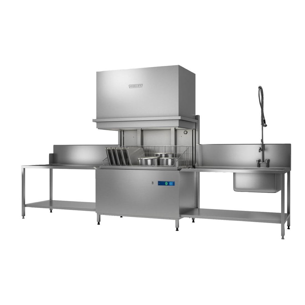 Hobart passthrough utensil washer, cleans pots and pans, cast iron cookware, baking tins, trays and racks with perfect wash results. The double capacity of this Twin model increases the amount that can be washed per cycle.