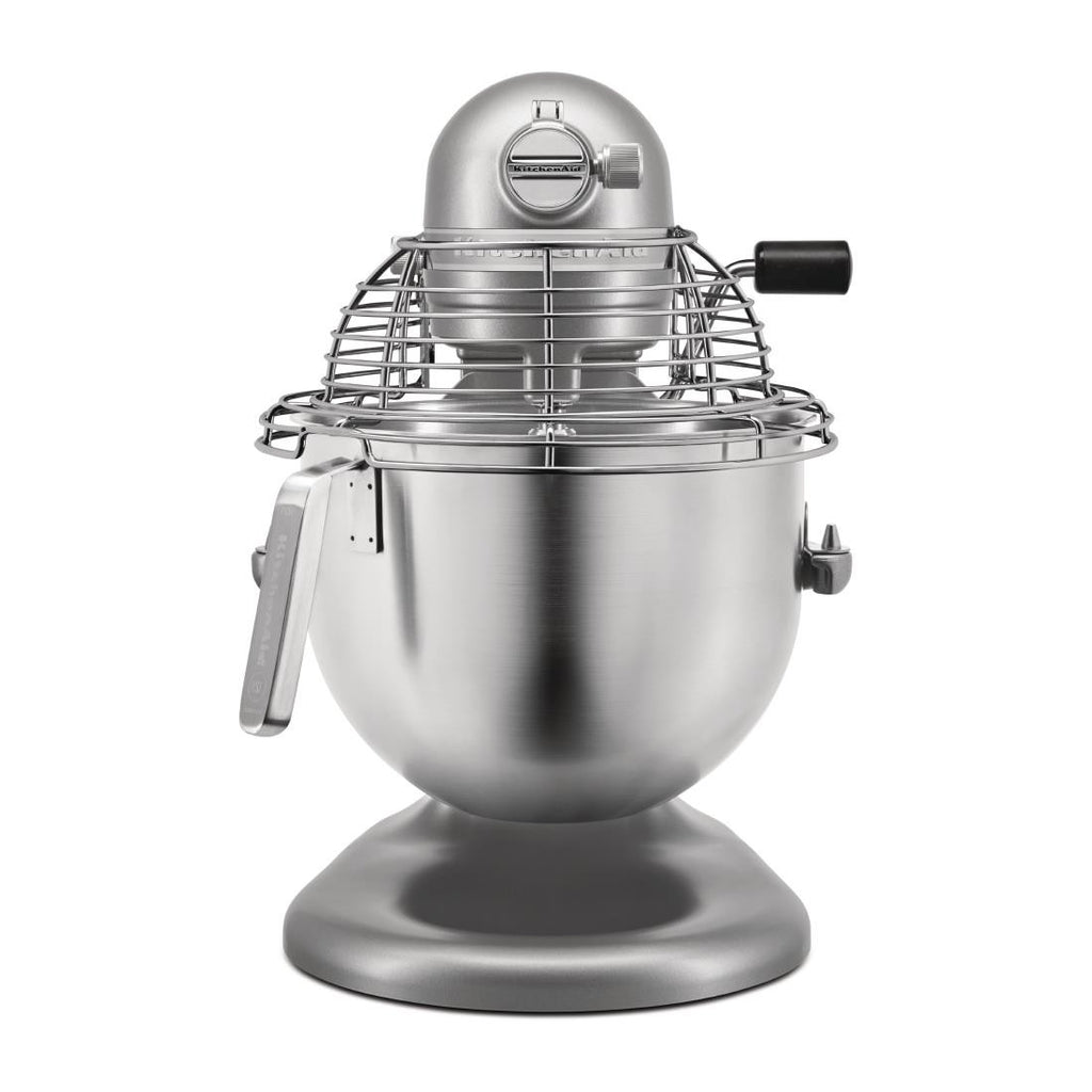 With its silver, all-metal design and powerful yet quiet 1.3HP motor, this KitchenAid 6.9 litre professional stand mixer combines flexible, heavy-duty performance with attractive and stylish looks. Designed specifically to outperform in industrial or production environments, the KitchenAid Professional has all the features you need to produce fantastic results - easy-swap mixing heads, a strong stainless steel wire guard, emergency stop button, automatic shutoff and a sturdy pouring chute, all ensuring compliance with European Machinery Directives. And thanks to the front-mounted attachment hub, it's easy to transform the mixer into a huge variety of other kitchen machines - perfect for kitchens with limited space.