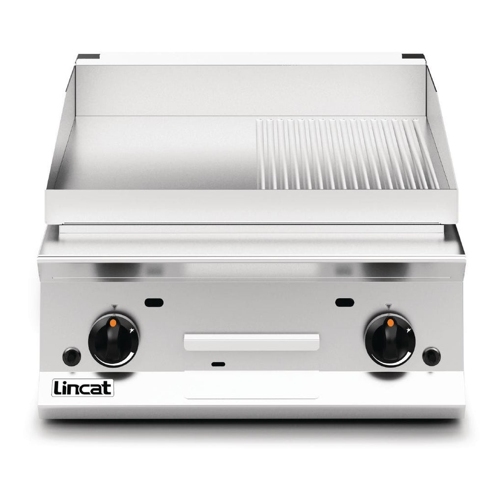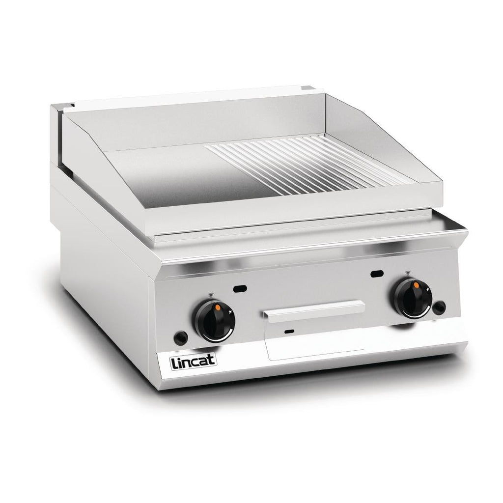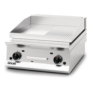 Robustly built to handle the demands of the commercial environment, this Opus 800 Griddle with half ribbed plates makes short work of burgers, steaks, bacon and other meats with use of either of its two independent heat zones. These two separate areas give flexibility to your cooking options, with the added alternative of a ribbed plate to set an attractive barbecue style brand to your food. A large drain hole and collection area for excess fat reduces cleaning times, meanwhile a heightened splashguard helps avoid spillages on other kitchen surfaces.