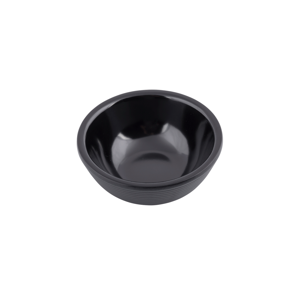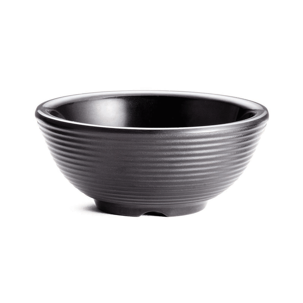 This 4oz Melamine Black Ribbed Ramekin is a must-have for commercial restaurants or kitchens. Its ribbed design adds a stylish edge to table settings. This ramekin is dishwasher safe and thermal safe up to 212 degrees Fahrenheit, making it a great tool for sauces, chutneys, preserves, and more. Essential tableware for busy hospitality services.