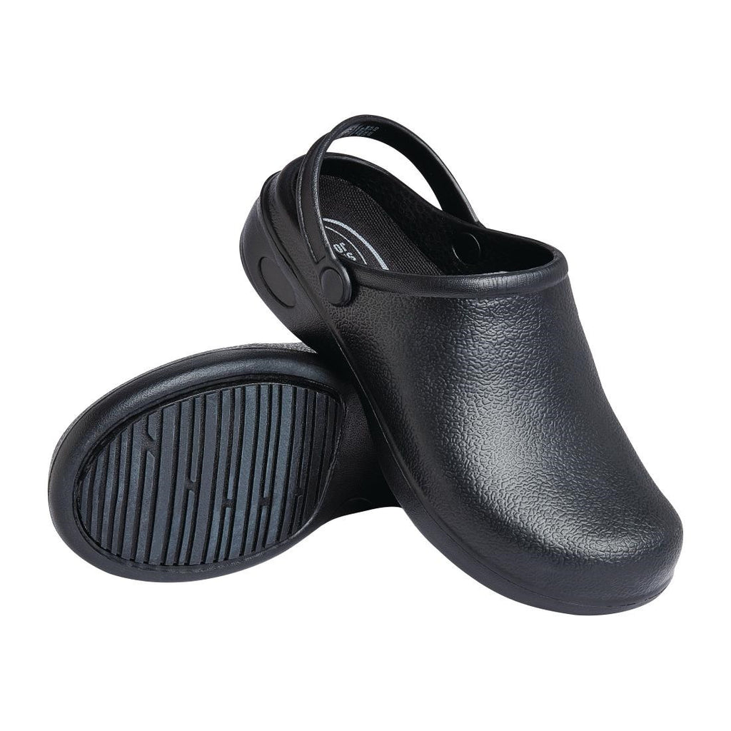 Stay comfortable during long shifts with these size 3-4 safety clogs from Nisbets Essentials. With slip-resistant soles, the clogs can withstand wet or greasy floors - preventing accidental falls, perfect for busy kitchen professionals.