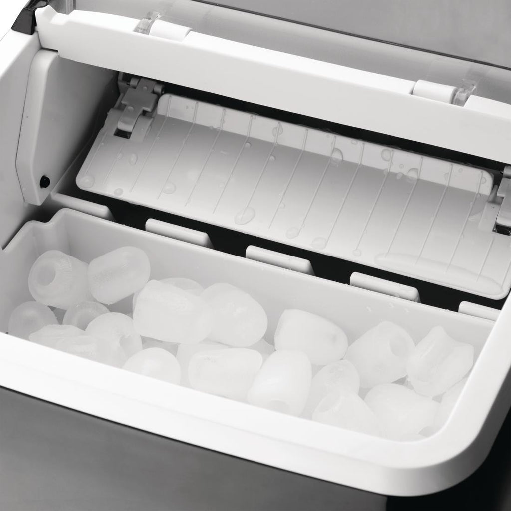 Made with a high-quality plastic interior and exterior, this ice machine is durable to most wear and tear, whilst being easy to clean after each use - save yourself money and time, whilst ensuring a hygienic environment. Features 'Ice Full' and 'Add Water' warning lights that provide you with clear and simple information.