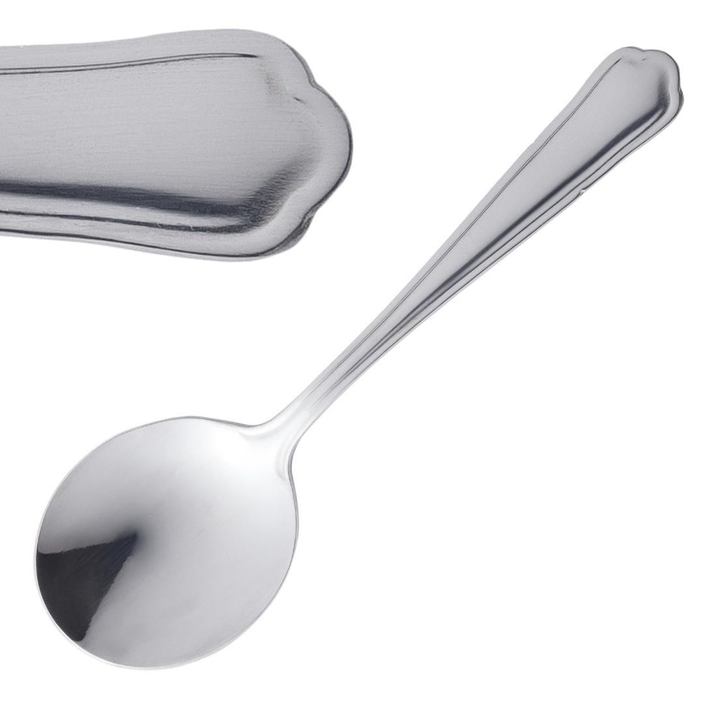 With rounded edges and an ornate design, this soup spoon offers a sophisticated look and feel that will complement a crisp, white tablecloth beautifully. The Dubarry collection from Olympia is made from 18/0 stainless steel that receives multiple levels of polishing and buffing to produce a high-shine finish. The soup spoon has a quality feel and balance that will ensure a comfortable feel in the hand.