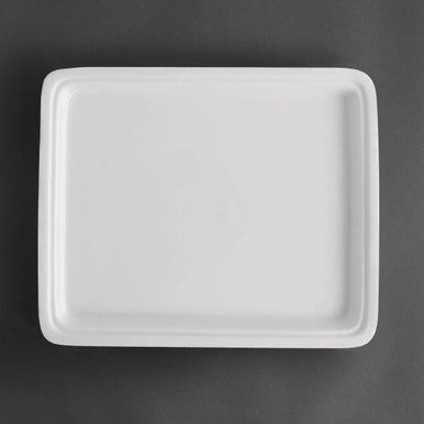 Gastronorm sized porcelain dishes suitable for hot or cold food preparation, storage and presentation in buffet displays or as an alternative to traditional stainless steel pans.