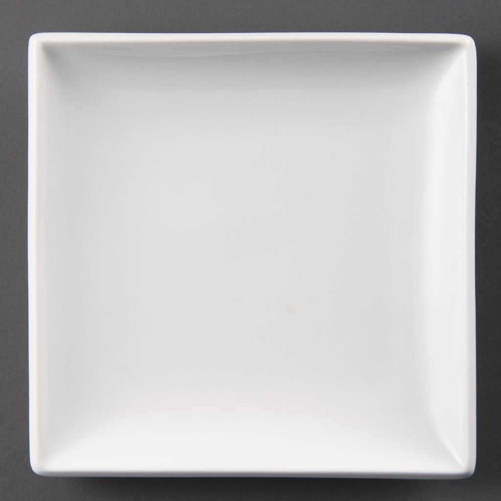 An appealing, pure white 9.5" square plate from Olympia, designed to provide a great value and hardwearing porcelain crockery solution for busy hotels, canteens, casual dining restaurants and cafes. Strengthened rolled edges ensure the plate is chip resistant and the fully vitrified body gives great glaze durability, making it ideal to withstand the rigours of the professional catering environment. The plate is stackable, helping maximise storage space, and oven, microwave, dishwasher and freezer proof.
