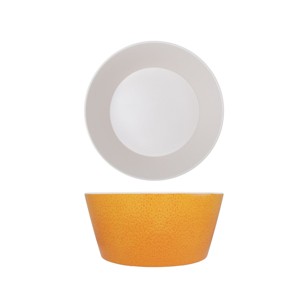 This Seville Bowl Orange 2.5L is also available in Lime Green and Lemon Yellow. These bright earth rich colours are designed to capture interior lighting from any angle, maximising the appetite appeal of your food presentation counters. Made up of Melamine, the dishes and bowls are lightweight and durable whilst also being dishwasher safe.