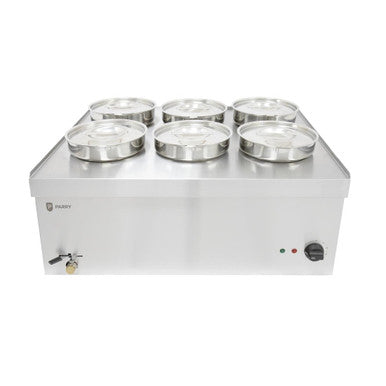Featuring six 4 litre pots (supplied as standard), the UK-made Parry NPWB6 bain marie has the capacity and versatility to let you warm and serve a wide variety of pre-cooked foods simultaneously. Suitable for everyday professional use, the Parry uses wet heat functionality to gently warm foods for extended periods, keeping them appetizing and ready to serve.