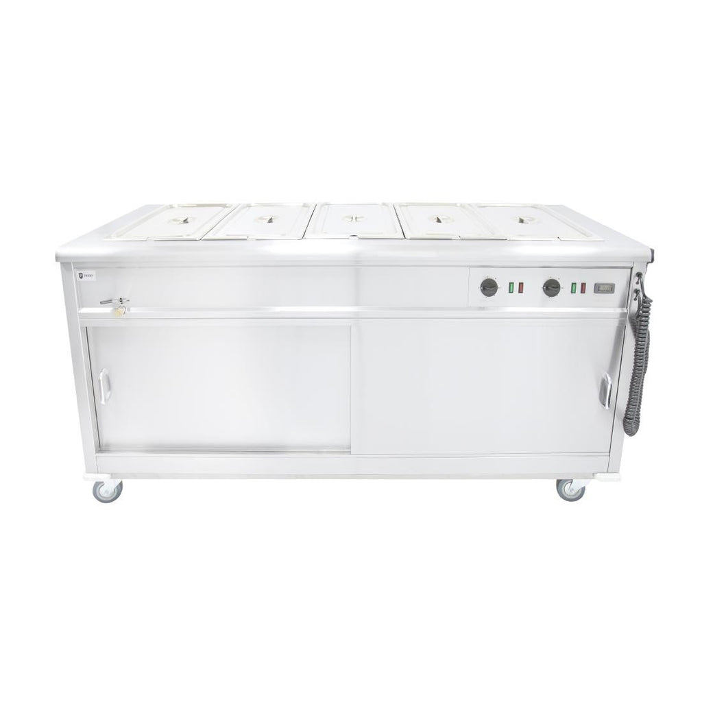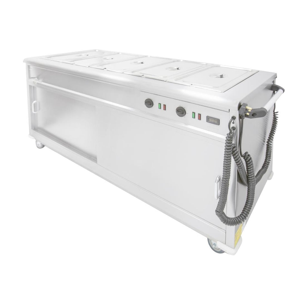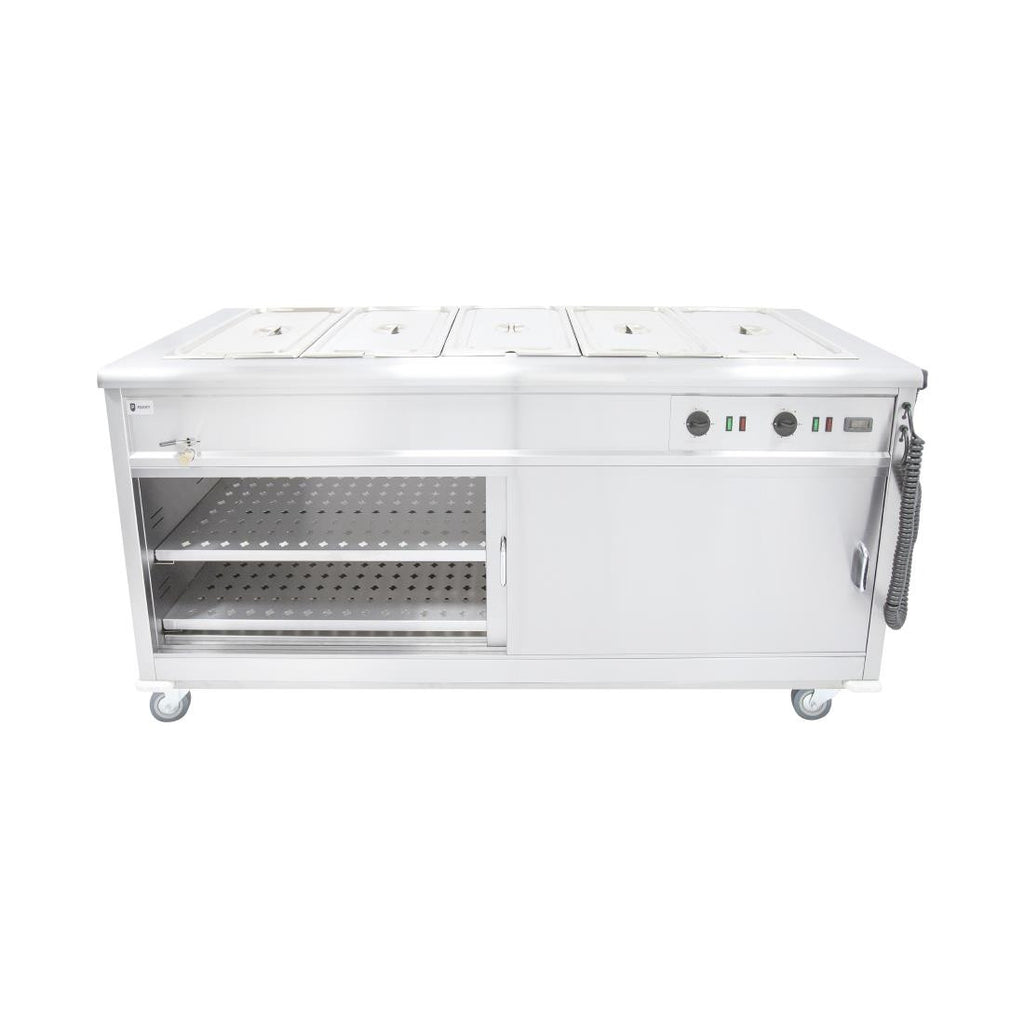 Attractive, user-friendly and reliable, the Parry MSB18 mobile servery features both hot cupboard and wet or dry heat bain marie functionality to provide a versatile and sturdy food service option for care homes, schools, restaurants and self-service establishments. With responsive independent controls for each food storage area, the user has the option of keeping plated meals or plates in the hot cupboard at safe and hygienic temperatures, whilst also being able to keep pre-cooked foods such as baked beans, gravy, curry and vegetables in the bain marie section.