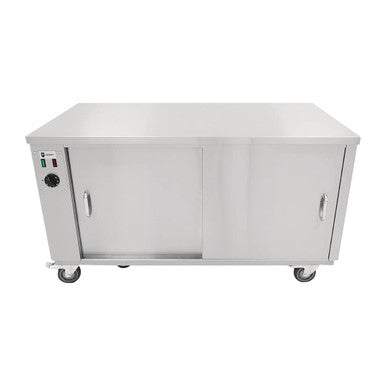 Low height designed to fit under worktops. Pass-through for dual side access. Temperature control cupboard up to 80°C. Adjustable internal sectionalised shelf.
