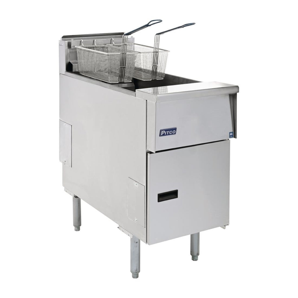 The Pitco SE14S-SSTC electric fryer is perfect for commercial operations and comes with solid state controls. This model is capable of producing 50Kg per hour and has space for twin baskets