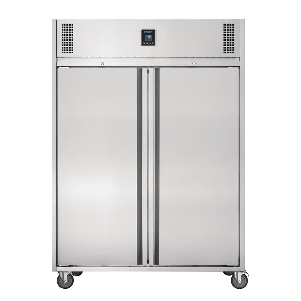 With an easy-to-use design and superb quality construction, the Polar U-Series Premium double door refrigerator makes for a great addition to the busy commercial kitchen. Designed to work in ambient temperatures of up to 43°C, this fridge performs in even the most demanding kitchen environments - helping to keep your produce fresh and reduce food waste. The Premium range features intelligent controls that allow you to quickly change settings between meat (-2°C to +2°C), fish (-1°C to +1°C) and general storage (+1°C to +4°C) at the touch of a button - a great option for kitchens with seasonal menu items. The generous 920 litre net capacity allows you to store a large amount of perfectly chilled produce. An anti-tilt, E-shaped shelf enables shelving units and gastronorm pans to be kept simultaneously - giving you the benefit of being able to store lots of different foods, and ingredients in the same fridge. The powerful forced air cooling system provides effective and reliable storage, even when the door is opened regularly as in most busy kitchens. The fridge also includes energy efficient LED lighting and advanced insulation, meaning that running costs are kept down, whilst also offering great stock visibility. Constructed from 304 stainless steel both inside and out, the fridge is easy to clean and highly durable. Heavy duty castors allow you to easily move the fridge during cleaning, storage, or renovations. The double door fridge also features lockable, vertical-handled doors that help to keep your ingredients safe, secure, and easy to access when required. Polar U-Series is the pinnacle of the Polar kitchen refrigeration range, designed to reliably store your most valuable produce. Built to the highest commercial specifications, these units feature powerful forced air cooling - perfect for reducing food waste whilst conserving food taste. If you expect to access the unit very frequently, Polar U-Series refrigeration reliably keeps a consistently cool tem