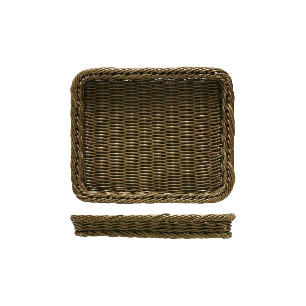 Our Lisbon Tray flat 1:2 Gastro tray which measures 325x265x40mm is a handmade poly wicker tray, is a fantastic alternative to real wicker, whilst offering a natural look and feel for your food display. This Lisbon 1:2 Gastro tray is ideal for supermarkets, deli bars and contract caterers to display fruit, vegetables, bread or even used to promote promotional items. This premium basket is 100% food safe, extremely durable and doesn't flake like real wicker.