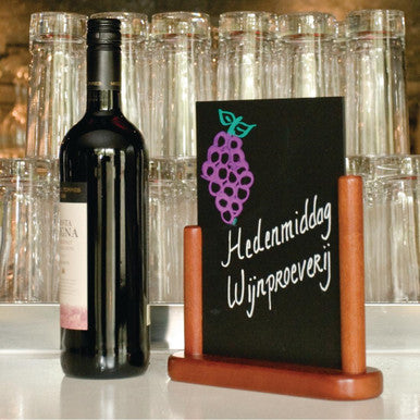 Simple but effective Elegant boards will stand on the table or bar, and are ideal for displaying your `specials'. Stands are made of rubber wood with a mahogany coloured finish. Boards can be easily removed from stand to write on both sides.