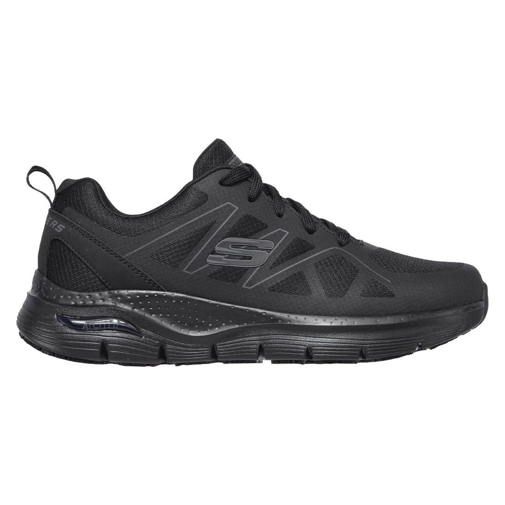 Support and comfort that puts in the hours comes in the Skechers Work: Arch Fit SR - Axtell shoe. Durable woven mesh fabric and synthetic upper in a Lace up sporty casual slip resistant work sneaker with patented Skechers Arch Fit(R) insole system with podiatrist-certied arch support. Podiatrist-designed shape developed with 20 years of data and 120,000 unweighted foot scans helps mold to your foot to reduce shock and increase weight dispersion.