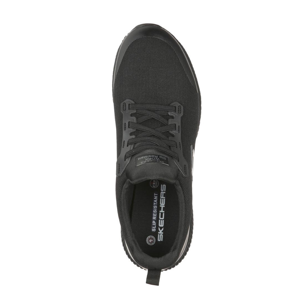 Comfort and protection that also looks great comes in the Skechers Work: Squad SR Myton shoe. Soft sporty knit mesh fabric and synthetic upper in a slip on stretch laced sporty casual work slip resistant sneaker with stitching accents and ESD insole.