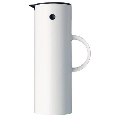 Classic vacuum jug with "rocker stopper" which opens automatically when coffee or other drinks are poured. Extremely functional and attractive in bright colours. The glass lined interior keeps liquids warm or cool for hours. Dishwasher safe.