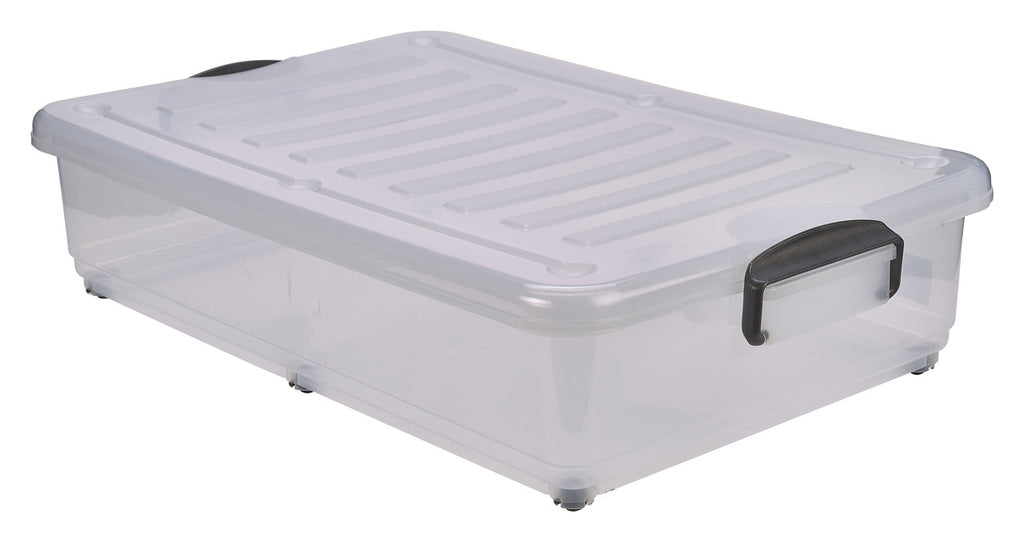 Storage Box 40L W/ Clip Handles On Wheels 4 Pack
