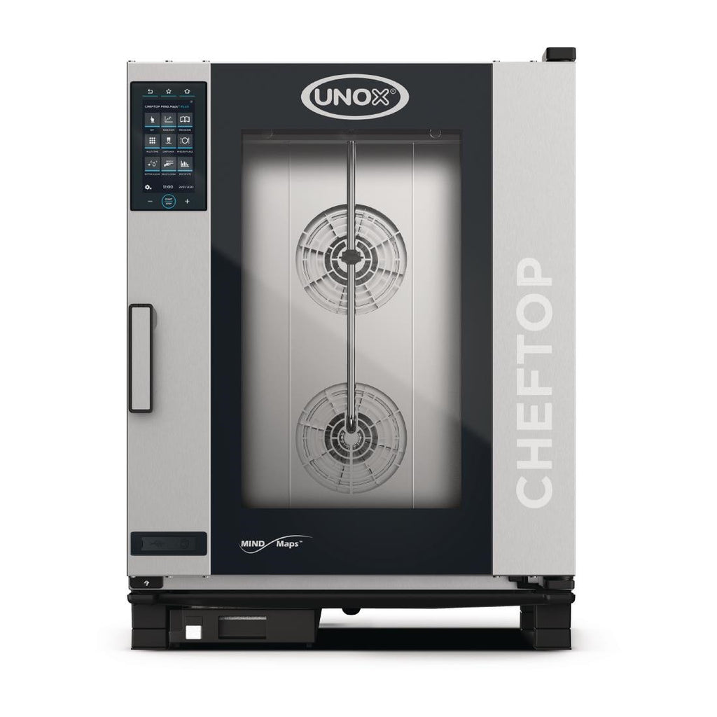 UNOX Cheftop Mind Maps PLUS GN 1/1 Right Hand Hinge 10 Tray Self Cleaning Combi Oven Wi-Fi Ready. 750x783x1010 WxDxH (mm). The Cheftop is the intelligent combi oven that grills, fries, roasts, browns, smokes, cooks with steam and much more. Wi-Fi Ready