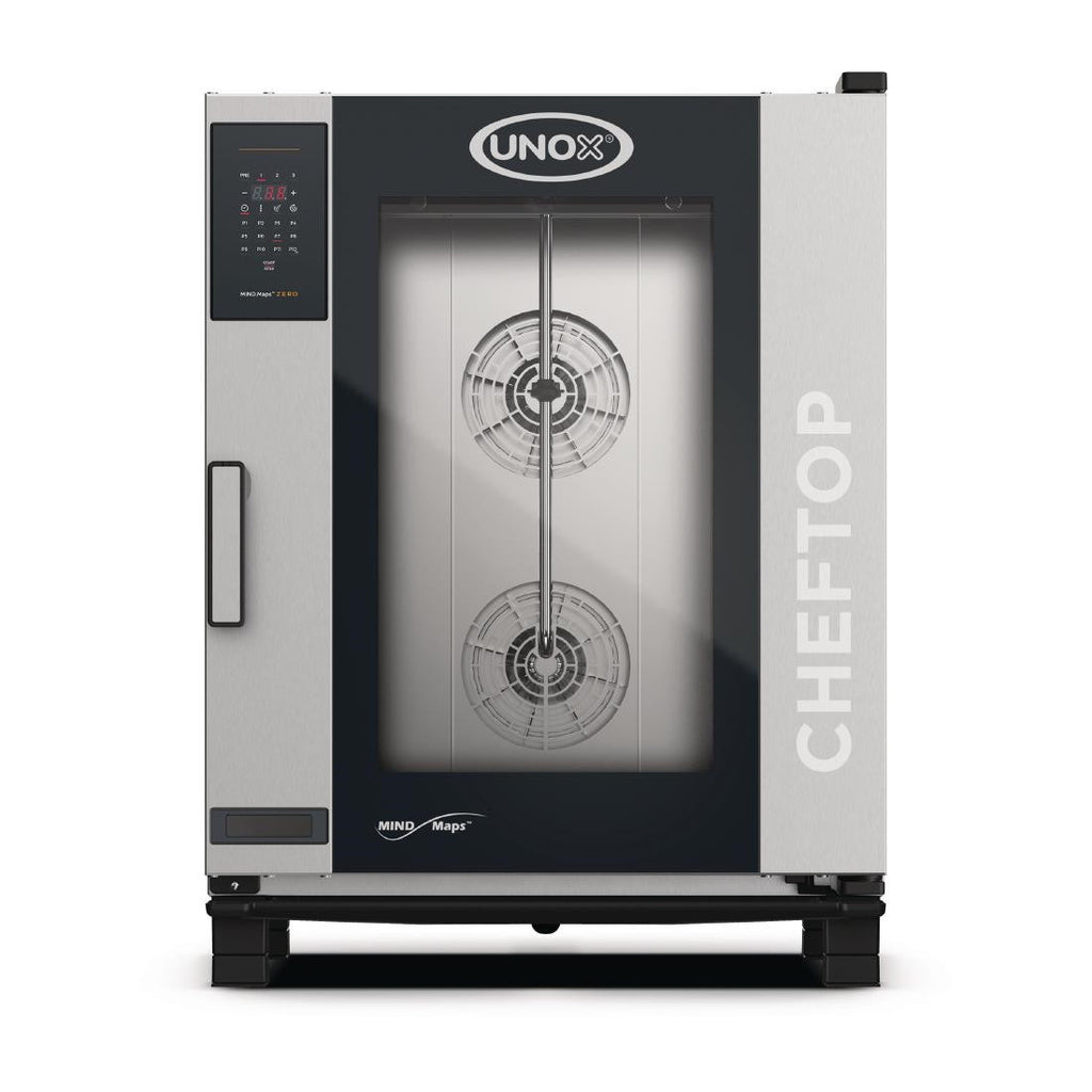 UNOX Cheftop Mind Maps ZERO GN 1/1 Right Hand Hinge 10 Tray Manual Cleaning Convection Oven with Humidity.750x783x1010 WxDxH (mm). The Cheftop is the combi oven that features everything that is essential and nothing that is superfluous. Simple to use, solid and efficient.