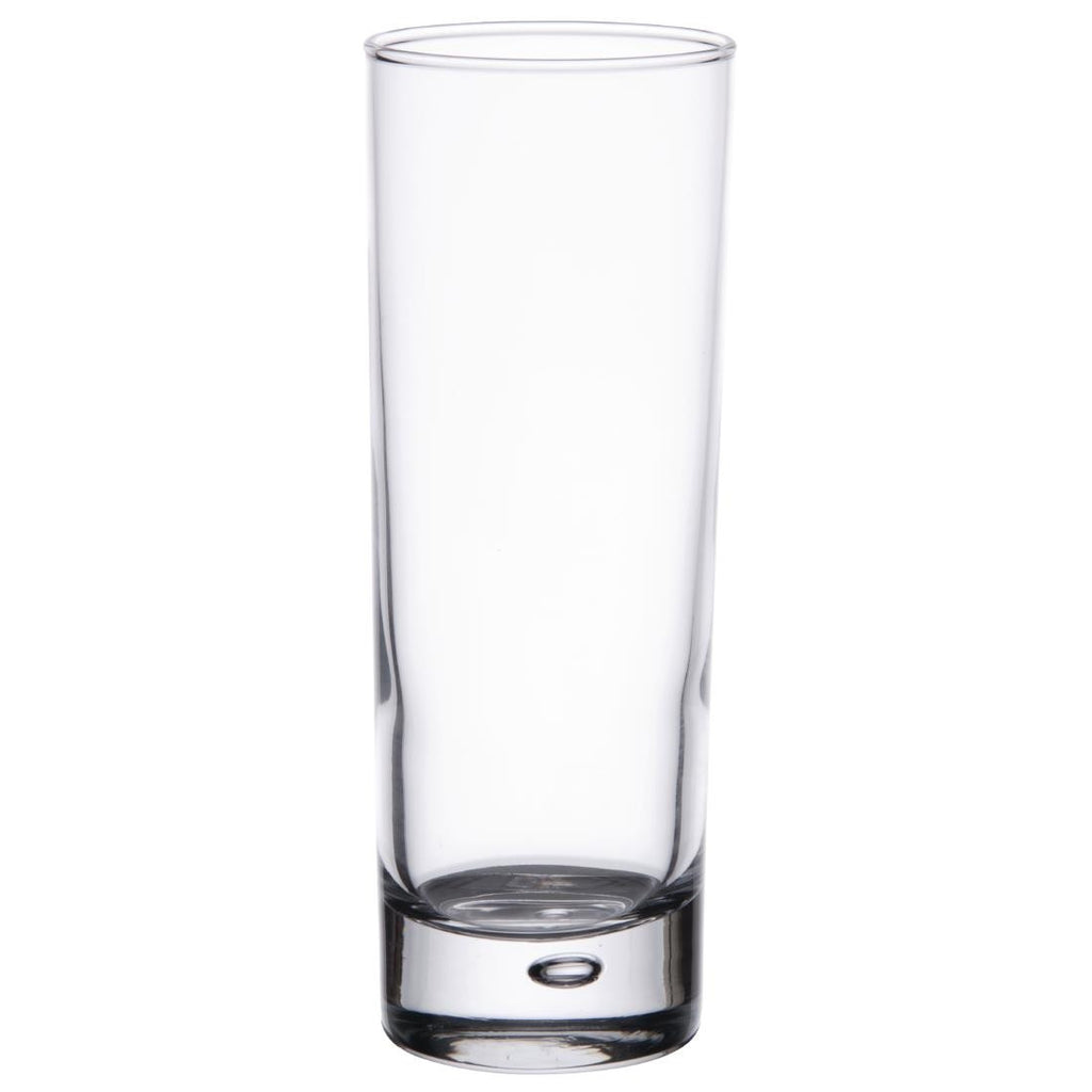 Whether it is a tall glass of lime and soda, or something a little stronger, The Utopia Centra Hi Ball glasses are a great choice for your restaurant or bar. The straight sided glass has a heavy base with the unique bubble feature, which makes them a great alternative to a classic hi ball glass.