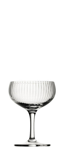 Utopia's Hayworth collection is a decadent range of glassware which features vertical optic enhances; made of handmade glass, this range oozes luxury. The 160ml coupe would make an excellent choice for serving sparkling wine at any event or celebration.