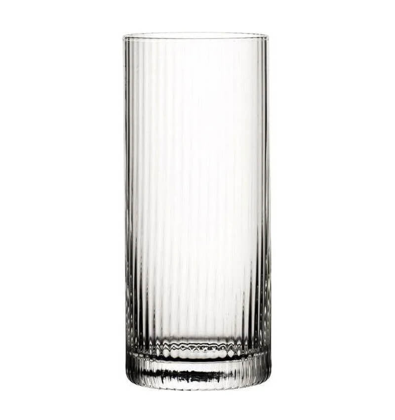 Utopia's Hayworth collection is a decadent range of glassware which features vertical optic enhances; made of handmade glass, this range oozes luxury. This Hiball glass is a versatile option which could be used for juices as well as cocktials and water. Due to its versatility, this is ideal glasswear for cafes, restaurants, bars or even at home.